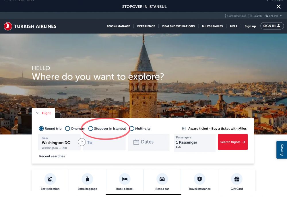 先解释一下什么是stopover; 土耳其航空公司为了吸引旅游观光,给在伊斯坦布尔转机的游客提供免费住宿及早餐服务。经济舱者有一天的住宿,乘商务舱者则有长达三天的住宿。订票过程也很简单,在土耳其航空官网选择stopover订票方式.