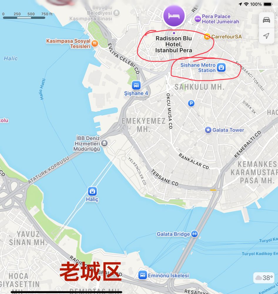 3)出了机场大厅的正门沿自动扶手步行梯往前走,乘坐11号地铁Metro(票价为39TL, 到终点站Gayrettepe-lstanbul,换成2号线。不过这段换乘是要走8-10分钟的路程。到了2号线入口再花27TL购票,然后再乘4站,到?i?hane站下。在GPS指引下,大约花10分钟就走到酒店,总共票价约$2。如果行李不多,这是一个很便捷的走法。