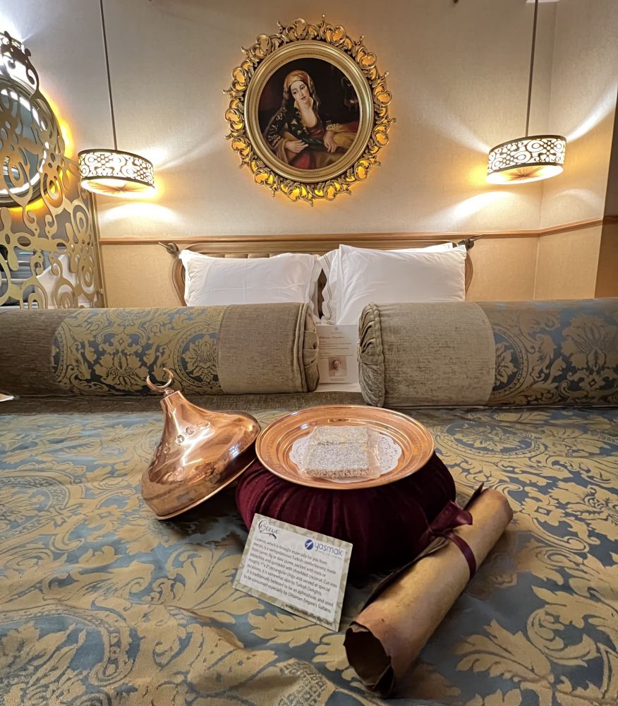 古色古香的浴具,轻飘飘的音乐,躺在帐幔低垂的浴床上,随着按摩师的手法,温暖的浴水和土耳其的香料不断地浇在身上,实在让人昏昏欲睡,飞行旅程中劳累疲乏及时差得以缓解,加上小费为$120。只是那按摩的老者力度穿骨,我头顶和太阳穴直到第二天还隐隐作痛。
