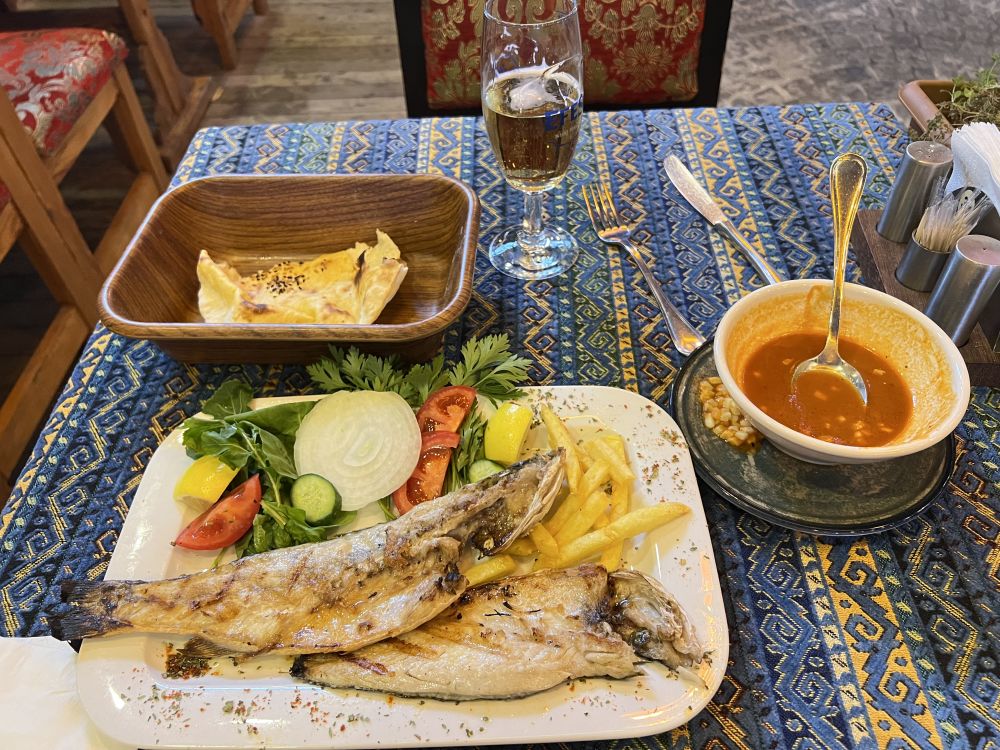 但是伊斯坦布尔餐馆里的价格并不便宜,尤其是在老城区。点了一个烤鱼,一个西红柿汤外加一个啤酒共25美元。