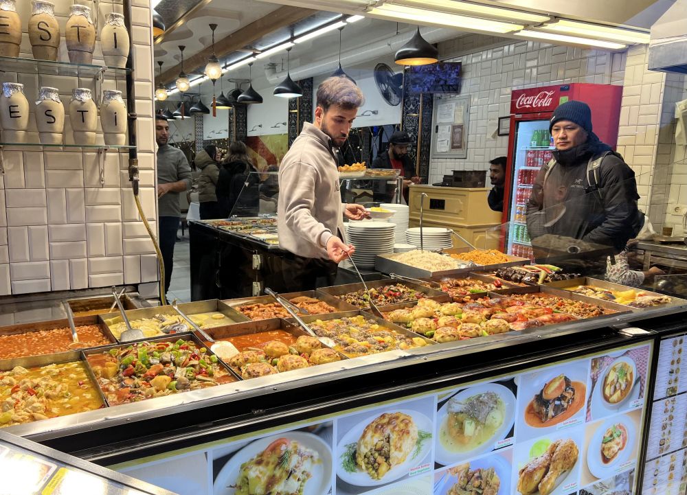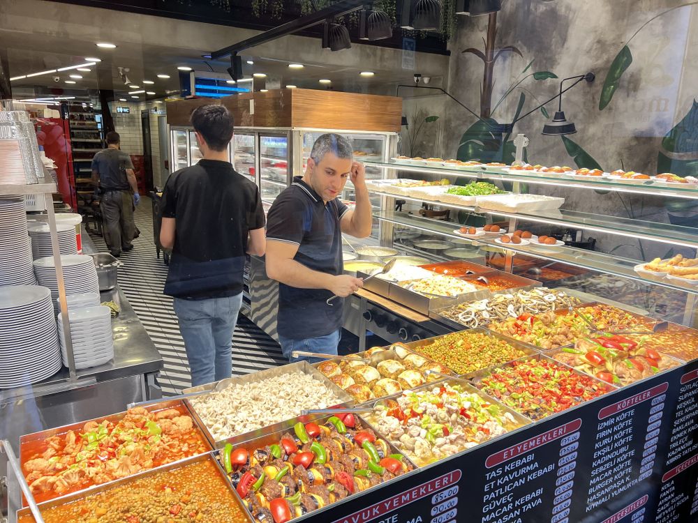 伊斯坦布有没有价廉物美干净整洁和童叟无欺的饭店呢?当然是有,也很多。下面这种干净卫生包香味俱佳而且明码标价的自选式饭店也很多,堂吃打包随意。也没有隐藏小费或服务费。