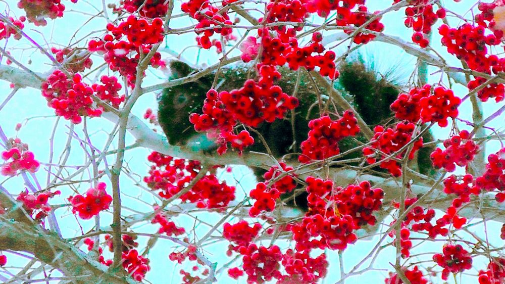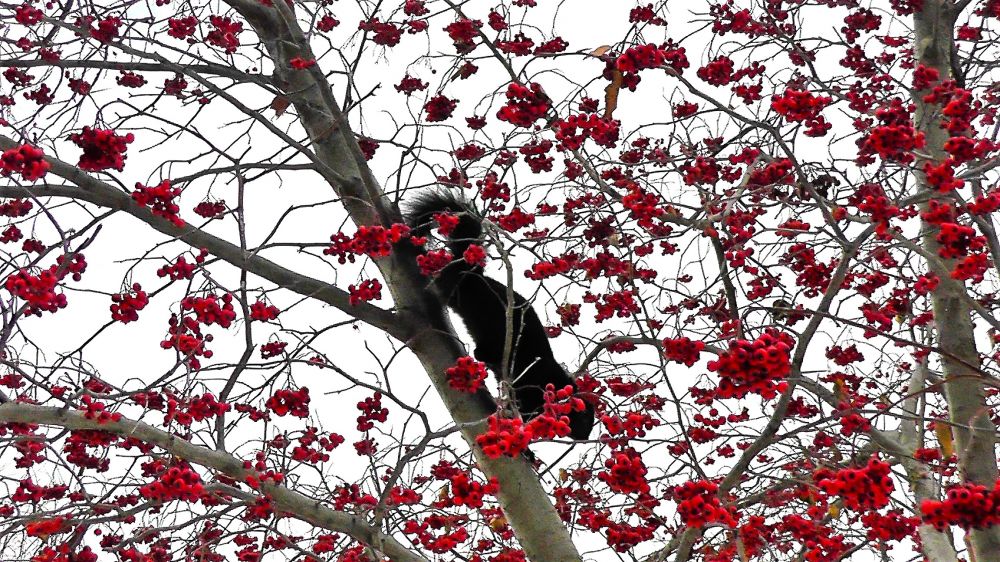 除了鸟类,松鼠Squirrel就是我家房前华盛顿山楂果的最大受益者。