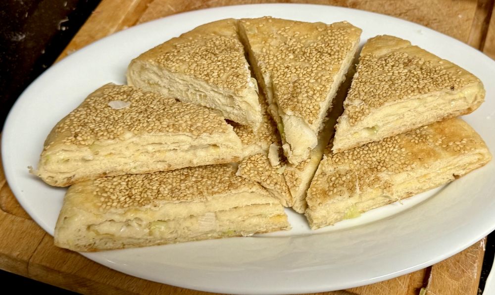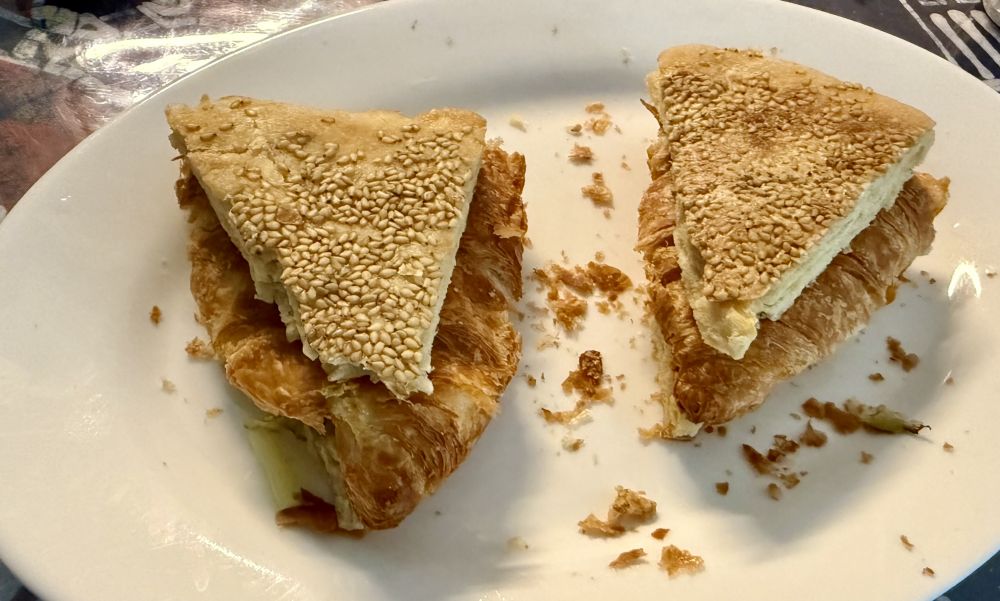 周末到了,献上美食 idea。 我家大厨刚做的黄金大饼夹上Costco买的 croissant 羊角面包,有点烧饼夹油条的味道呢,可谓自家版大饼夹油条。