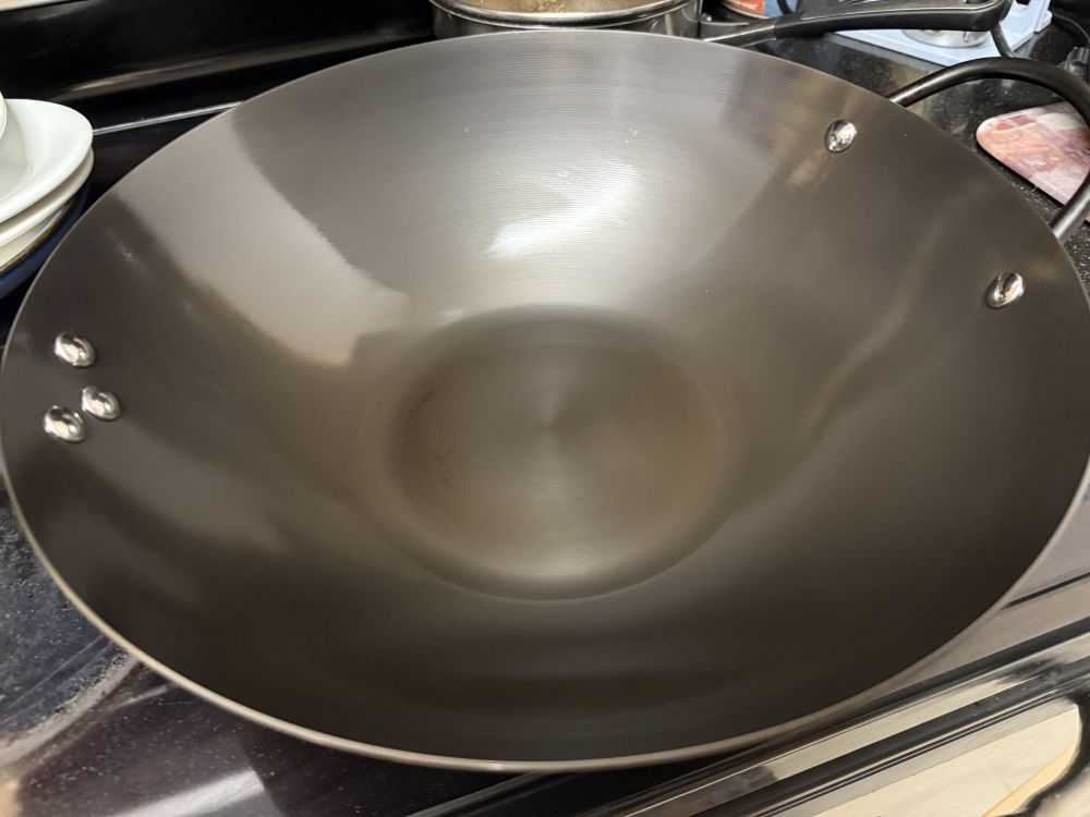 冲着这么多的好处,还有家里正好缺一口好的炒菜锅,就在亚马逊网站买了这款14英寸的碳钢炒锅。这类锅的价格从几十刀到一百多,我的锅价格中等,我主要看它是Amazon choice, 4.6 星,一千以上的评论。买到手的锅正如照片上一样。