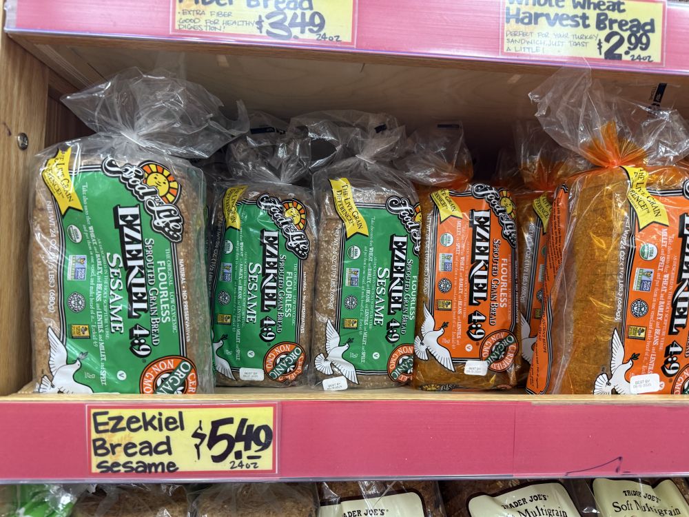 来自trader Joe's 多谷粒面包 sprouted grain bread , 含有大麦,小米,干豌豆,spelt 等低GI 面粉,是我喜欢的低升糖面包,虽然不便宜但物有所值,值得推荐。