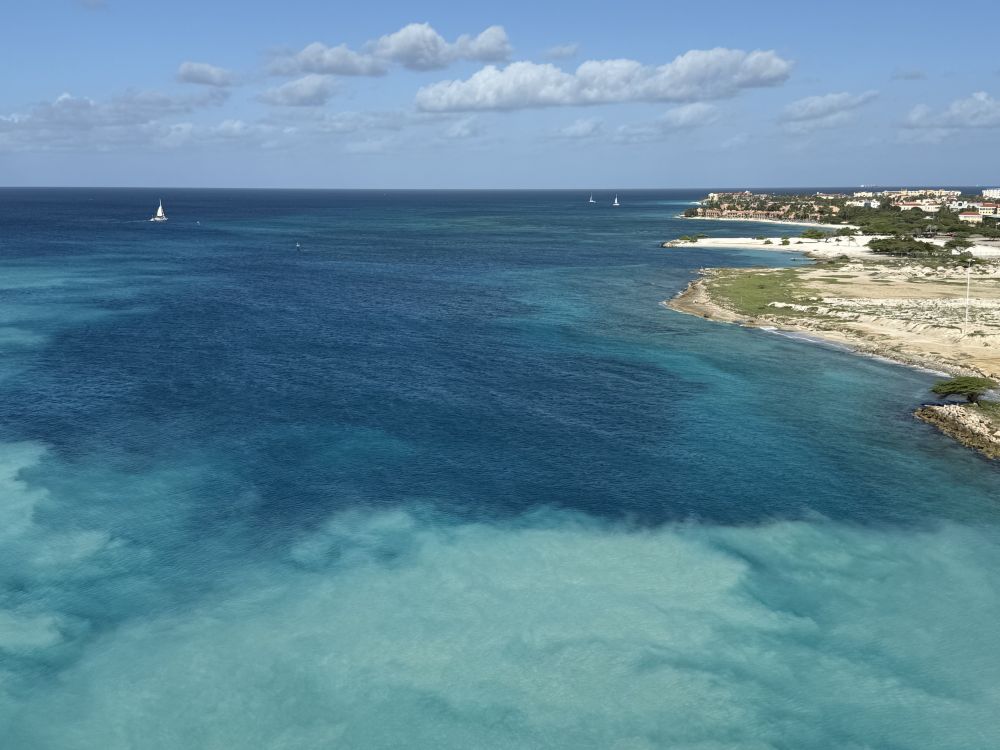 到达阿鲁巴,白帆点缀的蔚蓝色海岸赏心悦目