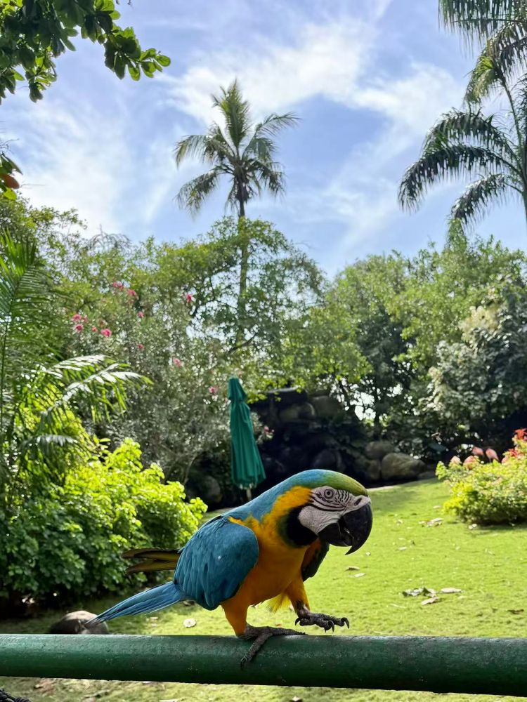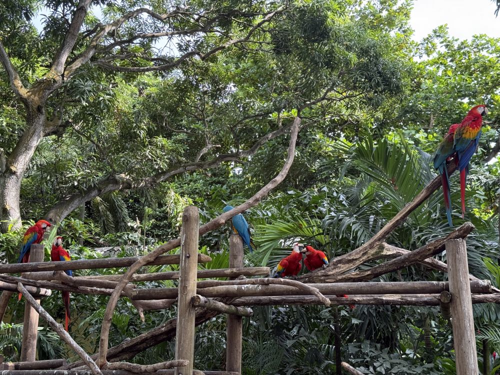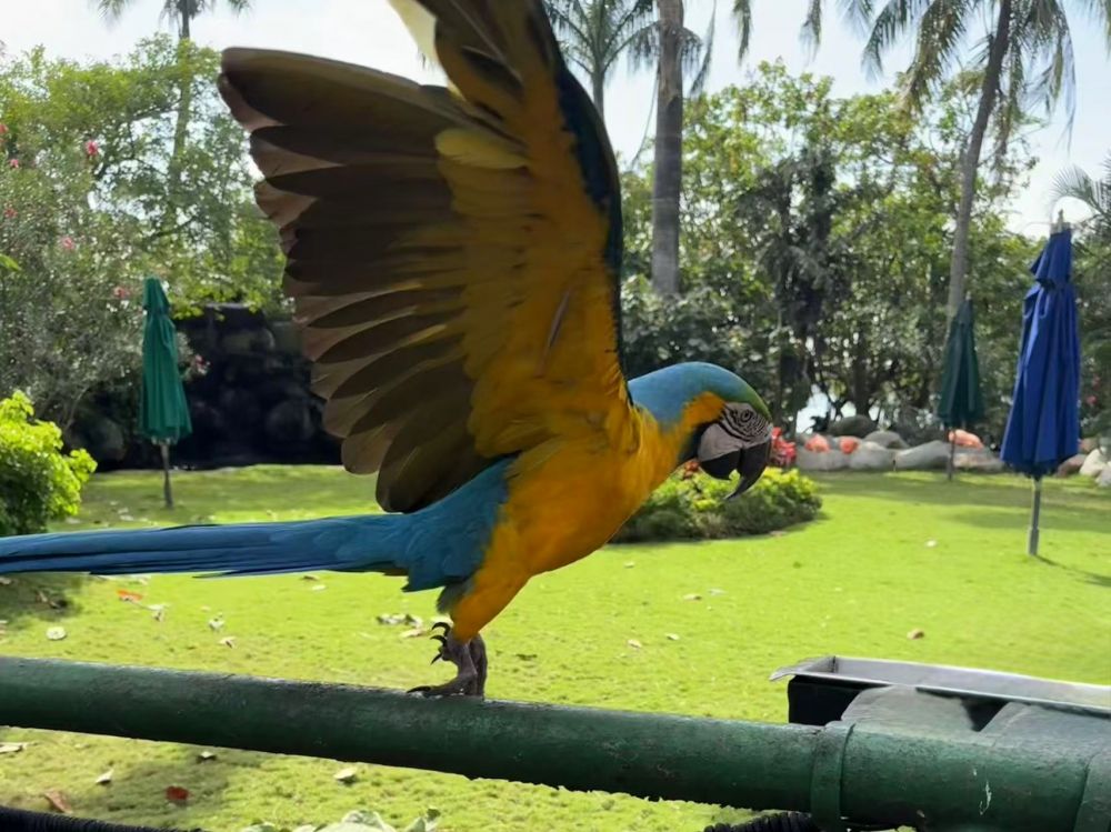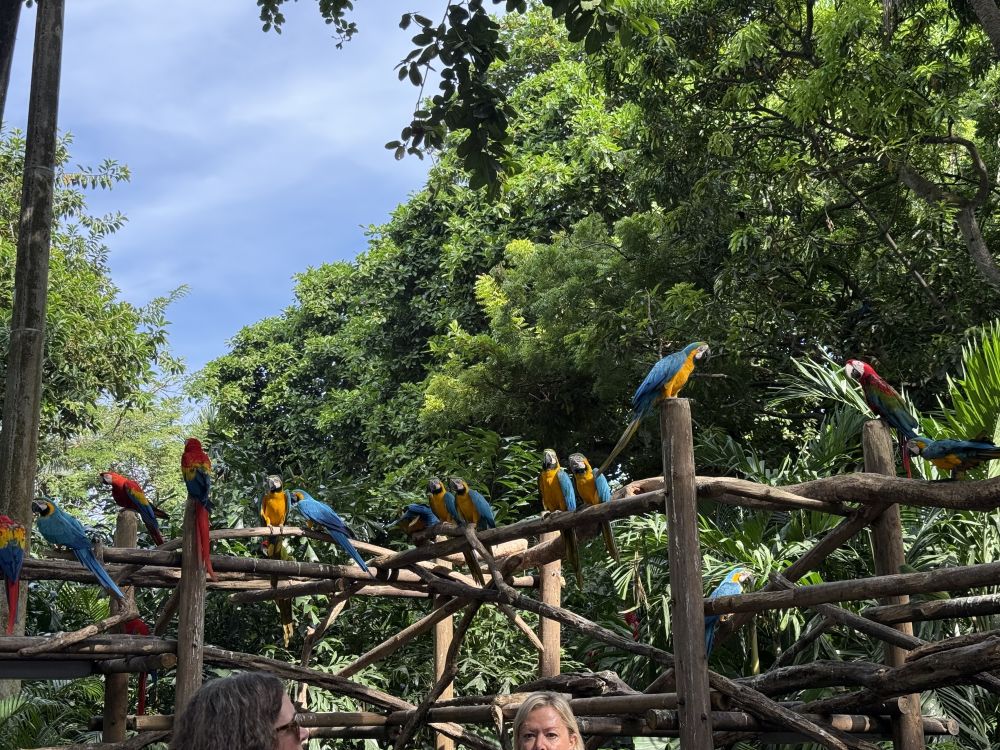 下了船就看到很多鹦鹉和几个孔雀,原来这里有个生态公园,鹦鹉是很漂亮的金刚鹦鹉