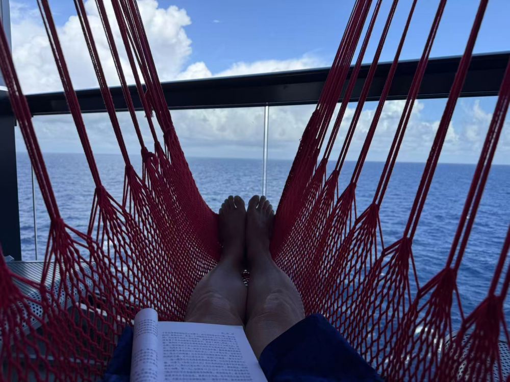 - 阳台标配吊床,深受广大游客喜爱,有些被救生船阻挡视线的阳台房甚至有两个吊床,作为补偿。