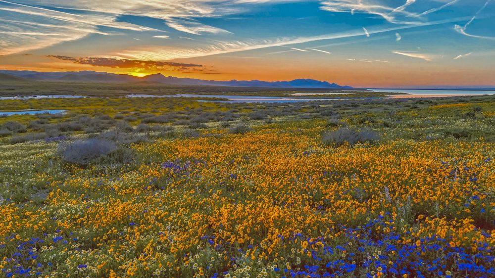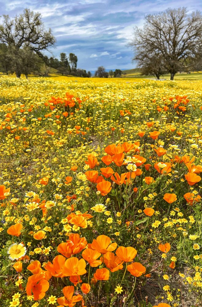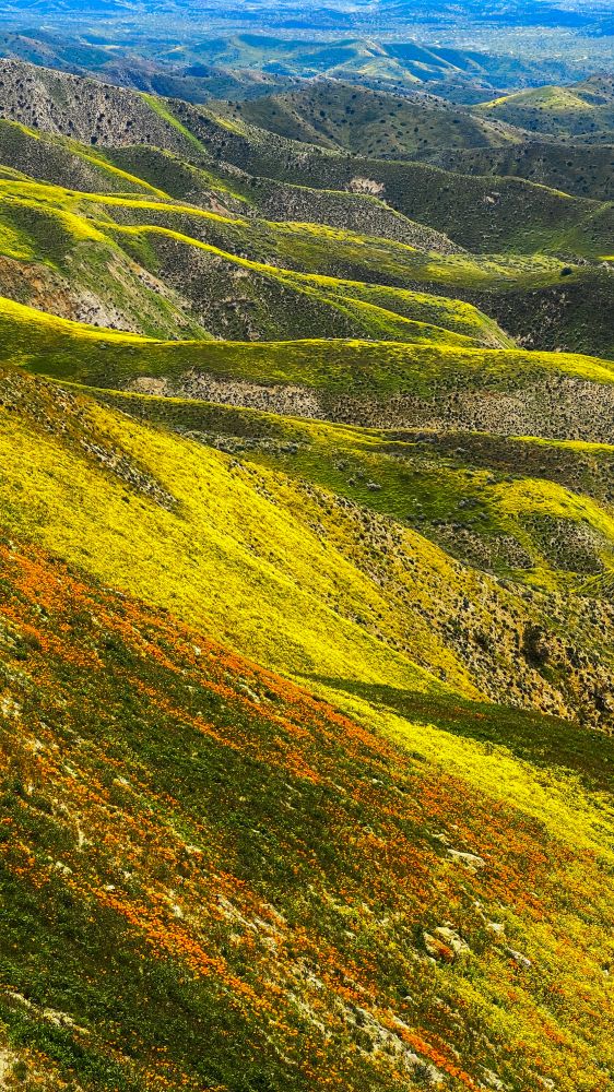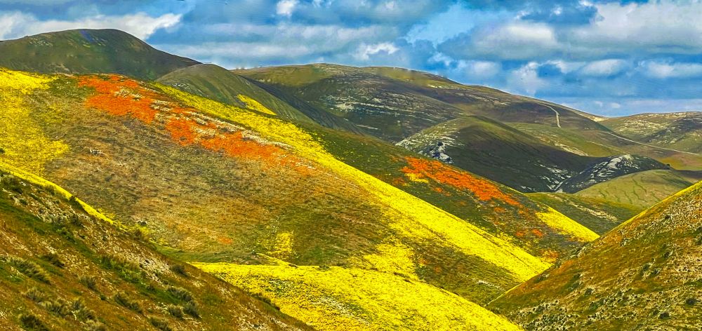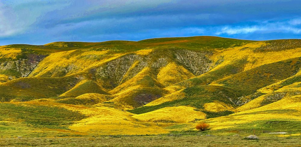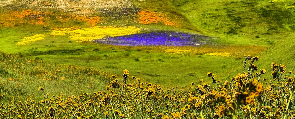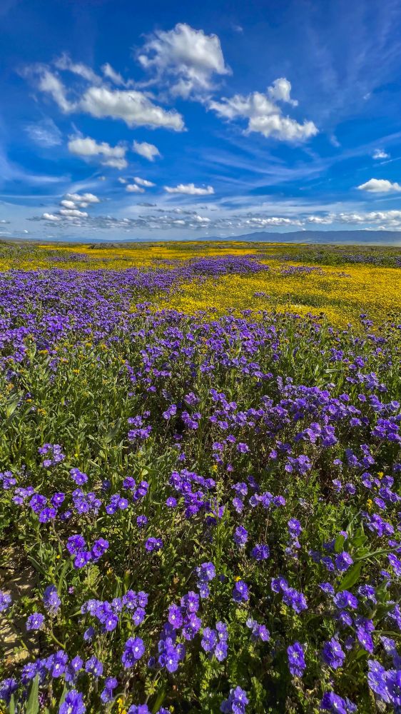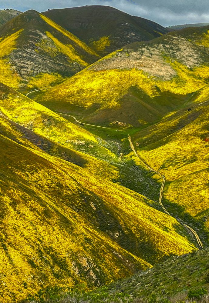 从朋友处听闻,加州南部的卡里佐平原国家纪念碑 (Carrizo Plain National Monument)公园因为得到足够的雨水,旱年深藏地下的山花种子发芽出苗开花了,漫山遍野恣意开放,慰为壮观。