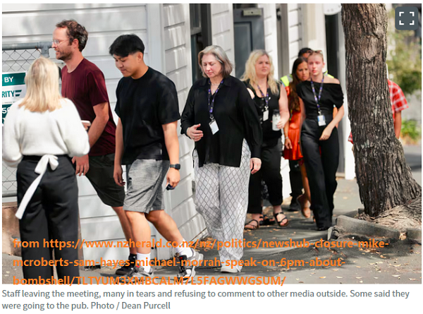 从新闻网站的图片看到 Newshub 的职员知道关闭消息后的震撼,这种被裁员的情景,我经历过,感同身受,理解他们的无奈,这么好的团队,说没就没了。