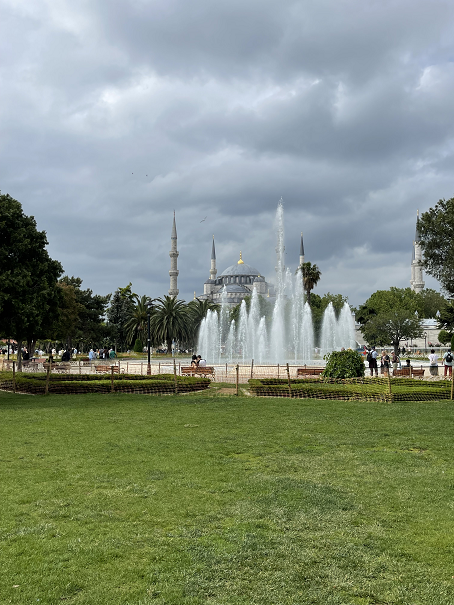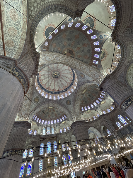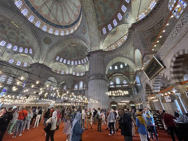 圣索菲亚出来后对面就是蓝色清真寺,所有人都不能穿鞋入内,短裤也不能进,女生必须包头。