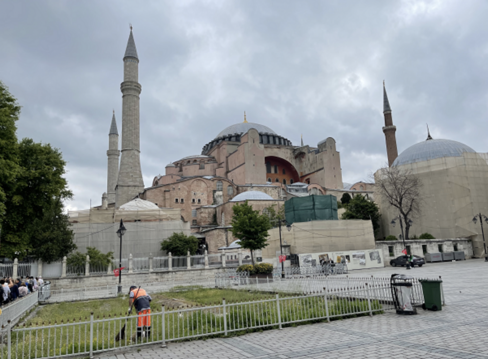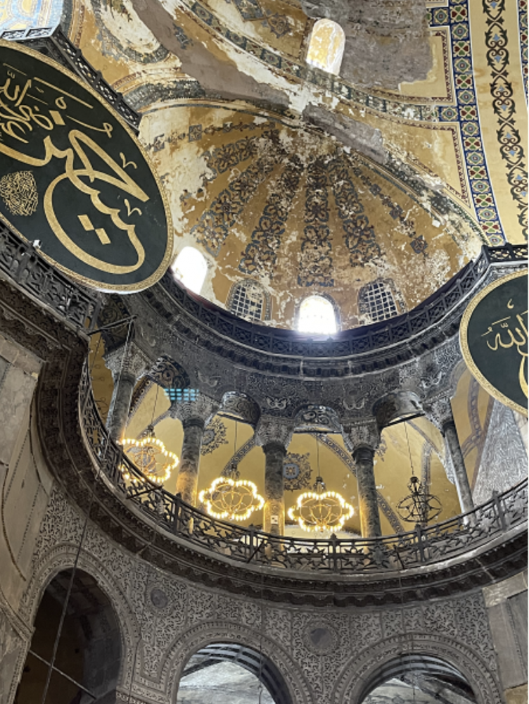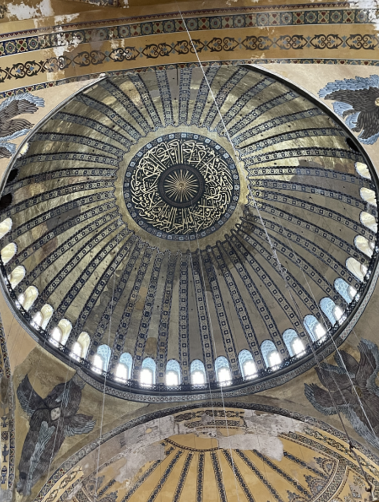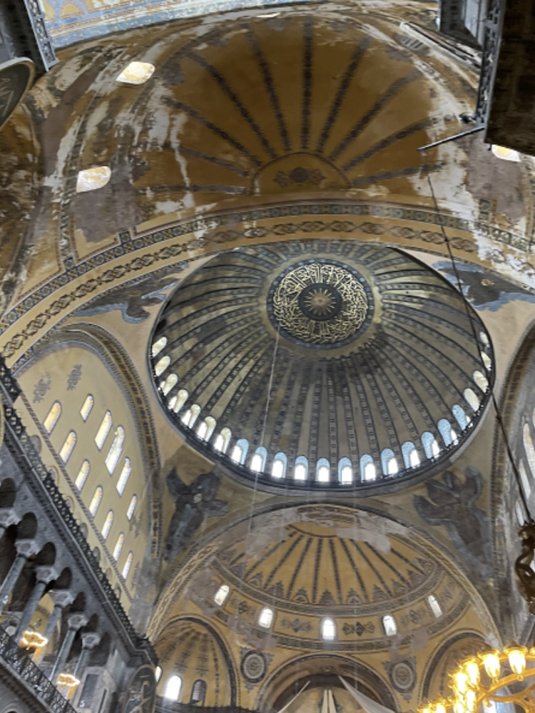 圣索菲亚大教堂从6世纪起就是拜占庭的官方大教堂。它直径31米的穹顶在随后1000多年里都是罗马建筑的顶峰,里面充满了精美细伦的与圣经和基督教有关的壁画。可惜被奥斯曼改为清真寺后大部分都被伊斯兰的东西覆盖了。