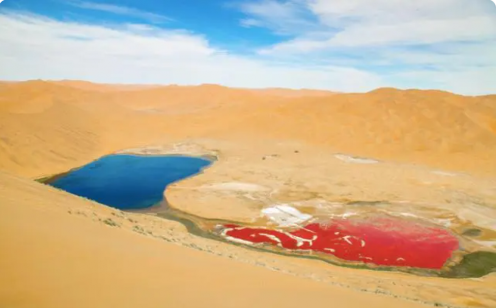 向导说,这是沙漠里最大的淡水湖,湖叫做巴丹湖,水里的鱼叫巴丹鱼,最大的有三四十斤重,肉质鲜美,现在他们向导一队分人停下打鱼,争取晚上有鱼肉吃,