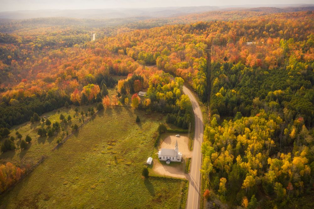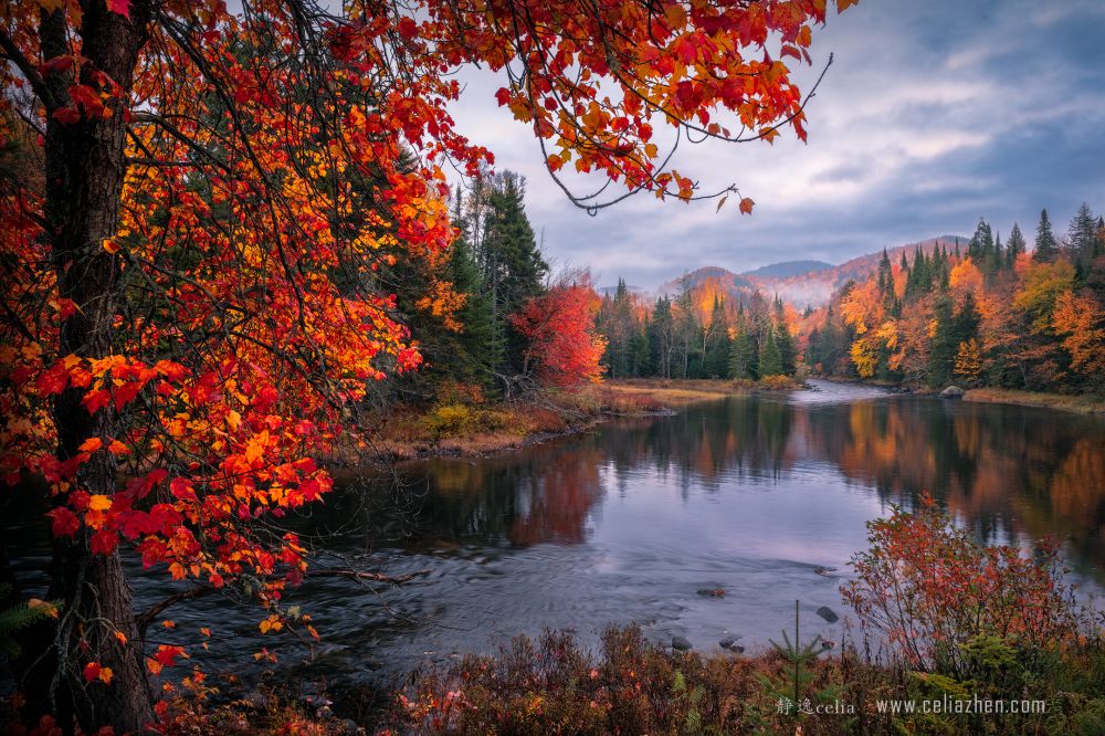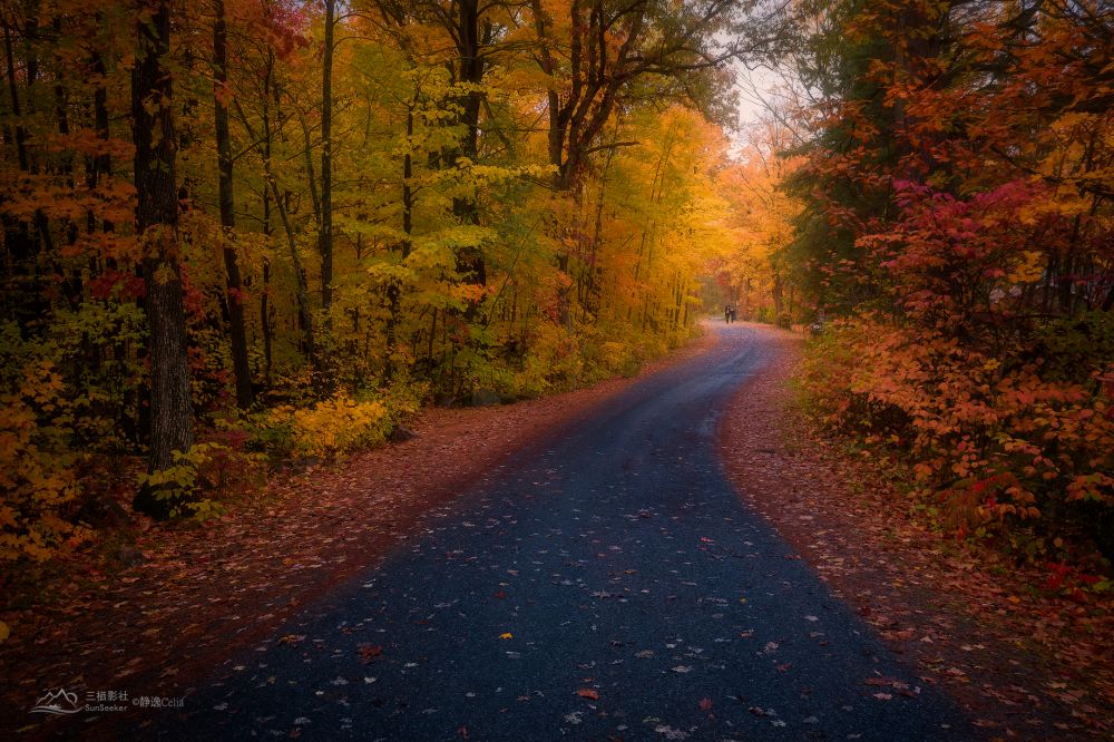 2020年我选择了阿冈昆的东北部拍摄秋色。当时我注意到安省的东部开始有点丘陵的味道,地势有了点起伏。联想到纽约上州的地势,给我启发判断毗邻的魁北克省地势会有更多起伏。于是决定次年一定要去魁北克探索拍摄秋色。