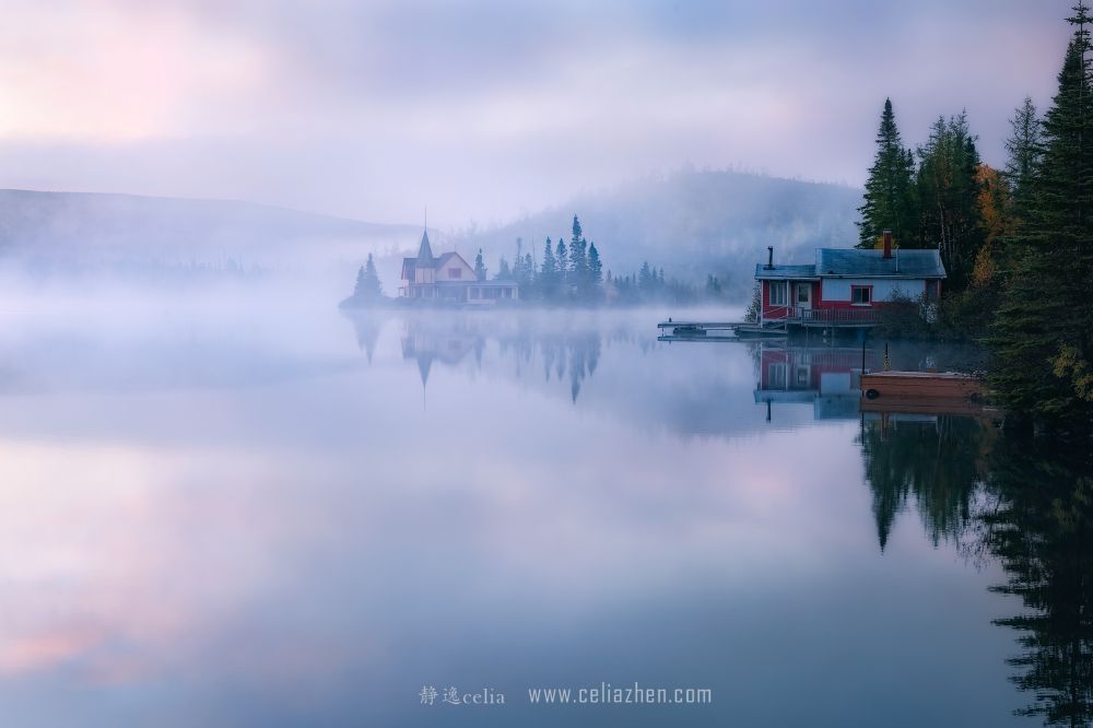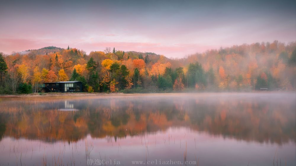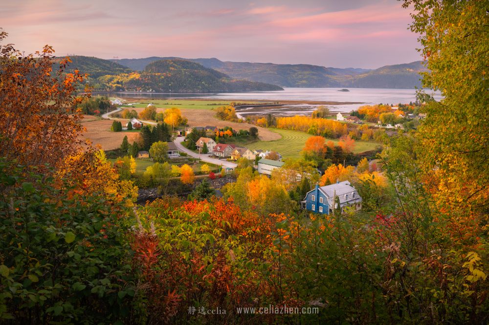 具有欧洲风情的魁北克民居房屋与绚烂秋色相融合,恰似一幅山水画卷: