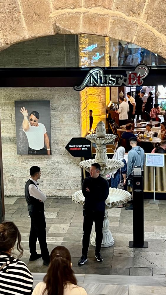 跟团游被导游带着几次参观购物,一次参观地毯作坊展厅,老板介绍前,先提供酒水饮料,一一问喝什么,有人喝苹果茶,有人喝raki - 土耳其国酒,最后问到我,秀了一句土耳其语:Cay lutfen - 请来杯茶,老板一怔:你会说土耳其语?我一笑:就几句。结果让推销员盯上了,后来贴着我推销几千美刀的一小块真丝地毯,说实话,那是真漂亮,不过也就是看看,好在店家并不缠人,导游更是离的远远的,不掺合。看看地毯制作及作品,喝杯茶,转身走人,毫无压力,体验不错。还参观了皮服厂展厅,为我们来了一场10人专场皮服时装秀。自己也走了回T台,开心找乐。
