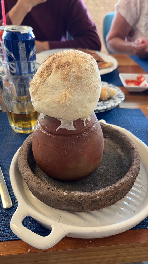 此行全程3000多公里。奔驰16座商务旅行车相当给力,宽敞舒适,冷气足,Wi-Fi时有时无,大家基本不用。土耳其公路系统发达,保养维护好,四处通达便利,乘车旅行相当安全舒适,一路仅见一例交通事故。高速公路服务站很多,设施齐全,尤其餐厅规模大,提供各种餐饮,有的餐厅在餐桌上摆放着免费面包,看到当地人买一份汤,再吃面包,没花俩钱,解决一顿饭。长途乘车旅行,定时休息,导游司机哥俩到点就找地停车,抽口烟,喝杯茶。服务站常看到十几座的旅行车,大巴很少,也许旅游旺季已过。