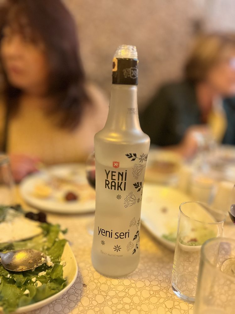 Raki 土耳其国酒, 酒清澈,加水后变乳白色再喝。味甜, 有点上头,不宜多饮