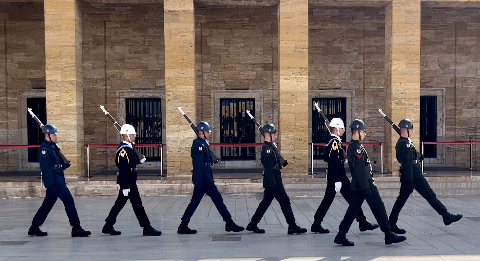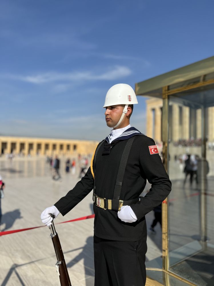 离开卡帕多奇亚去番红花城的路上,在首都安卡拉短暂停留,参观土耳其共和国创始人凯末尔的纪念广场,在广场上感受到土耳其人民的爱国热情及对领袖崇敬。卫兵在骄阳下一动不动,穿便衣的清瘦帅哥,态度和蔼地维持秩序。正午,赶上卫兵换岗仪式,陆海空三军卫兵迈着整齐,高抬腿,身体后倾,夸张的步子走到哨位前换岗,即庄重严肃又有点诙谐,富于娱乐性。参观纪念广场,时间虽短,印象很深。