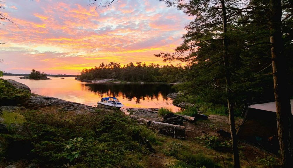 又是一个春末夏初时节,我们又来到了MPP公园(MassassaugaProvincialPark)。这次我们订的是324号营地,离码头较远,划艇的露营者们较少来,但对于我们开船的来说,无处不在的暗礁是最大的挑战。我小心翼翼地把着舵轮,眼睛紧盯着探鱼器的屏幕。我将屏幕设成了一半显示航线,另一半显示水底实时声纳图形的模式,不时地避让着迎面而来的暗礁。提心吊胆,总算安全地到了营地[