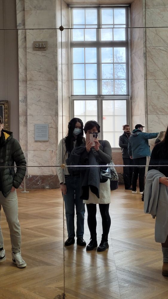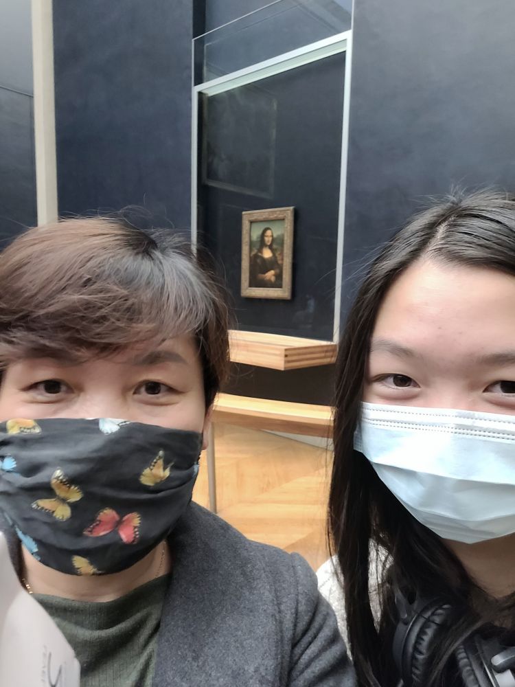 还好,可以在前面和蒙娜丽莎合个影,镜像的反了。