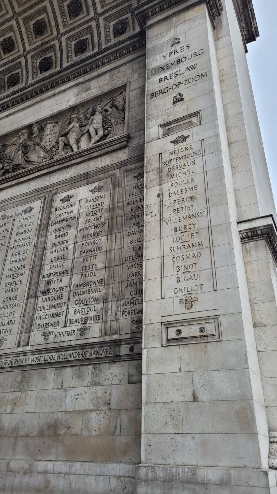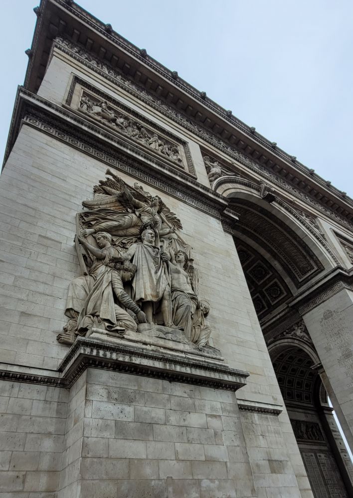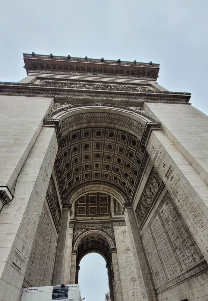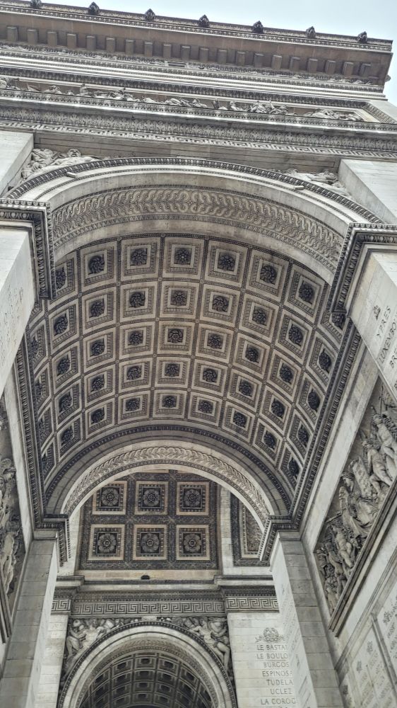 凯旋门,Arc de triomphe de l'Étoile,又叫雄狮凯旋门,是拿破仑为了庆祝打败俄奥联军的胜利,1806年下令修建,1836年竣工。
