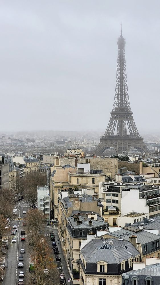薄雾中的埃菲尔铁塔。