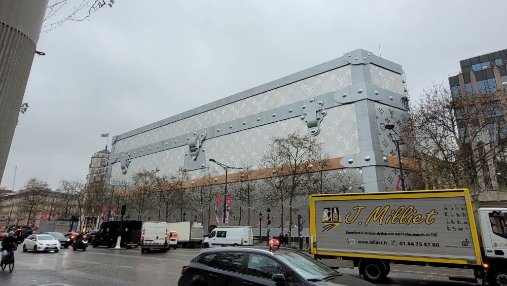 登完塔,走在香榭丽舍大街,这里就像是美国的商业街,全是一般常见的牌子,大的LV行李箱?
