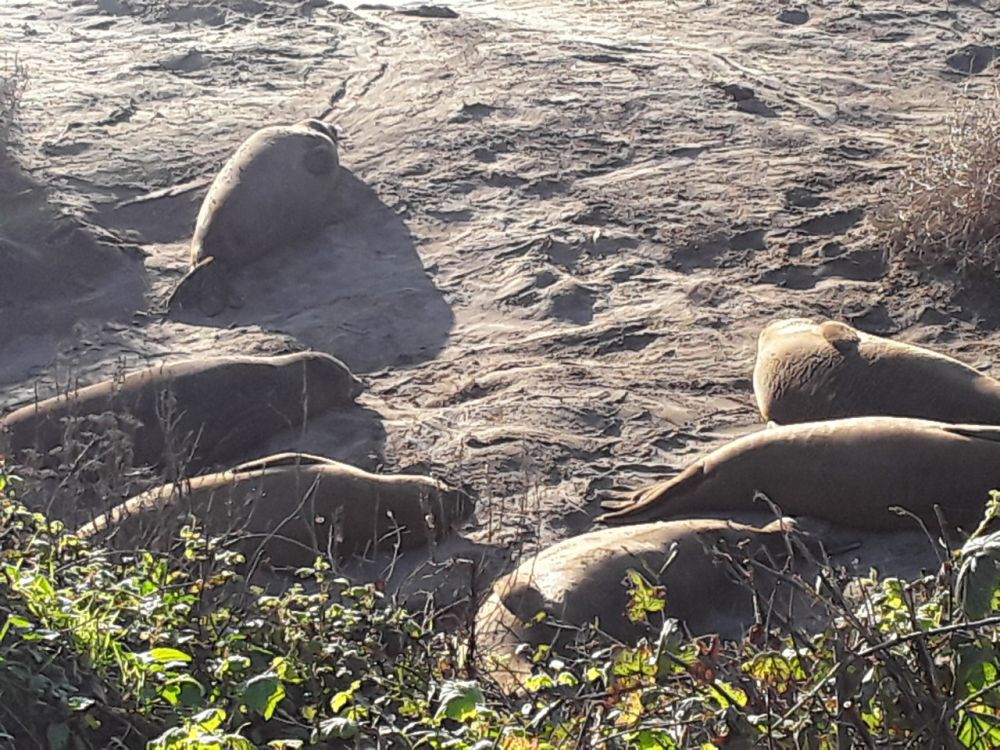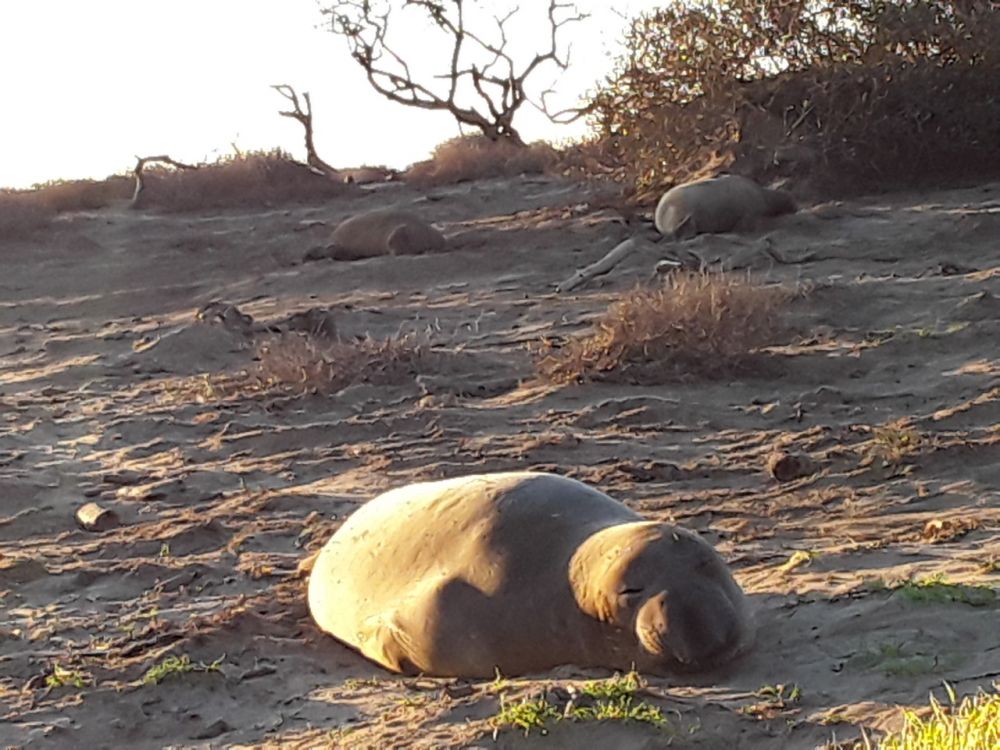 這個州立自然保護區在公路靠海的一邊,這裡因聚集著大量海洋哺乳動物“象海豹(elephant seal)”而在當地小有名氣。