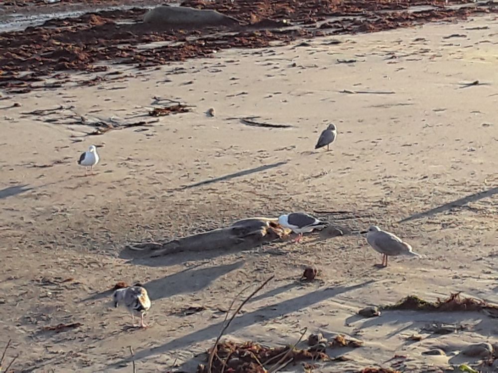 許多羸弱的小象海豹與它們的父母就此天各一方。留給他們的基本上是夭折海灘的不幸命運。我用手機拍下了一群海鳥正在海邊沙灘上銜食小象海豹屍體的畫面。這一場景,既使短暫的直視也會讓人難掩唏噓。
