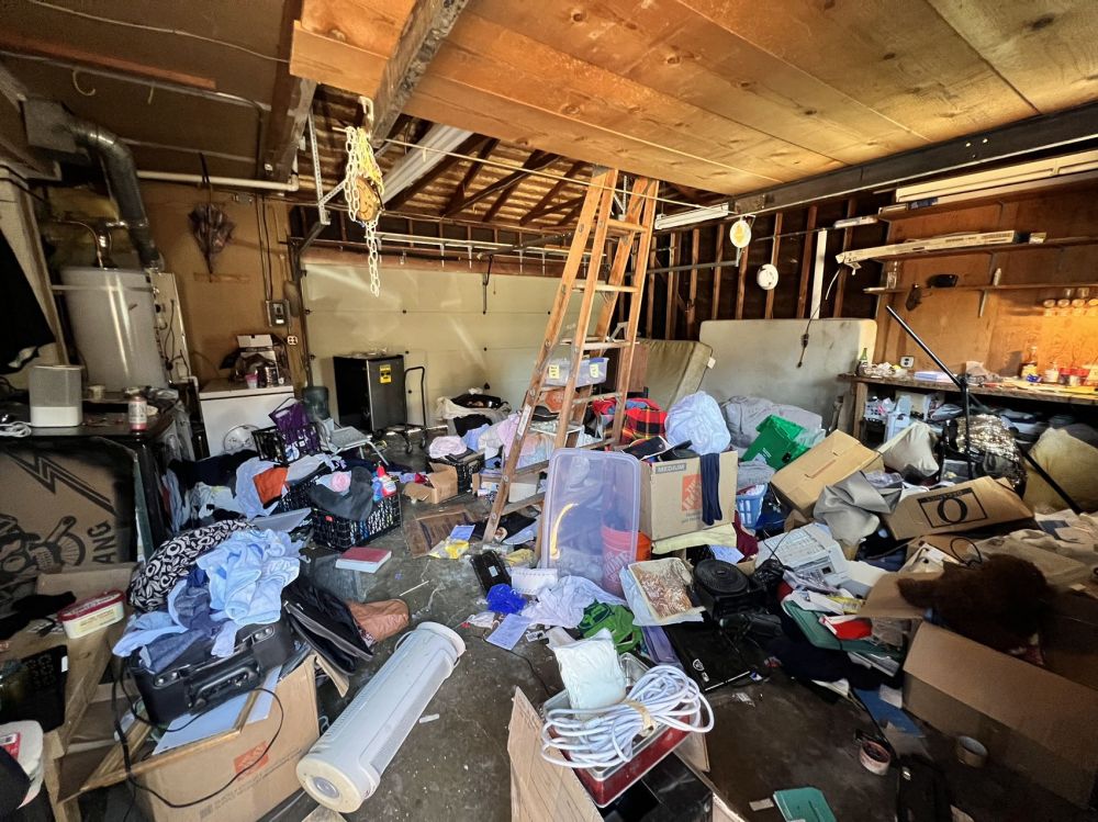 为了帮助麦克尽快找到手机,我周一中午开完会匆匆赶了过去。停下车就看见蔡大姐和麦克疲惫地坐在前院的躺椅上吃着面包,脚下放着矿泉水瓶,身后是一片旧家俱。我下了车跟他们打了个招呼,同时进屋把车库门打开。车库里一阵阵似乎是食品变馊的味道。我赶紧出来招呼他们:“赶紧过来翻一翻你们的行李,看看包和电话在不在里面。还有我们订的垃圾车可能要明天[
