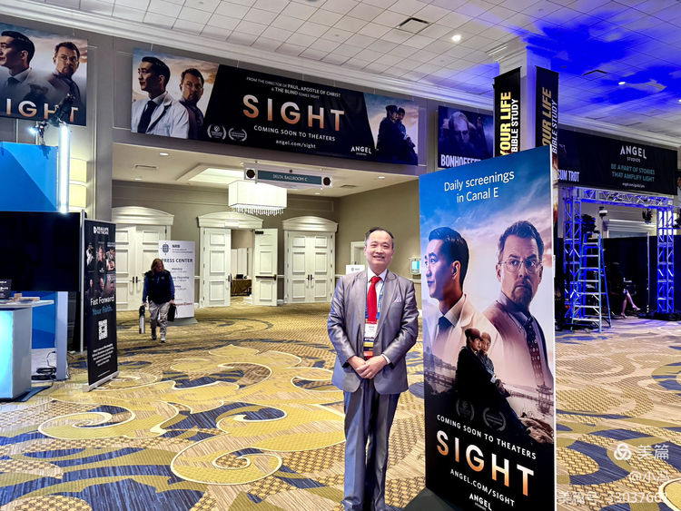 的会场过道中,Angel Studios 为电影“Sight”制作的各种