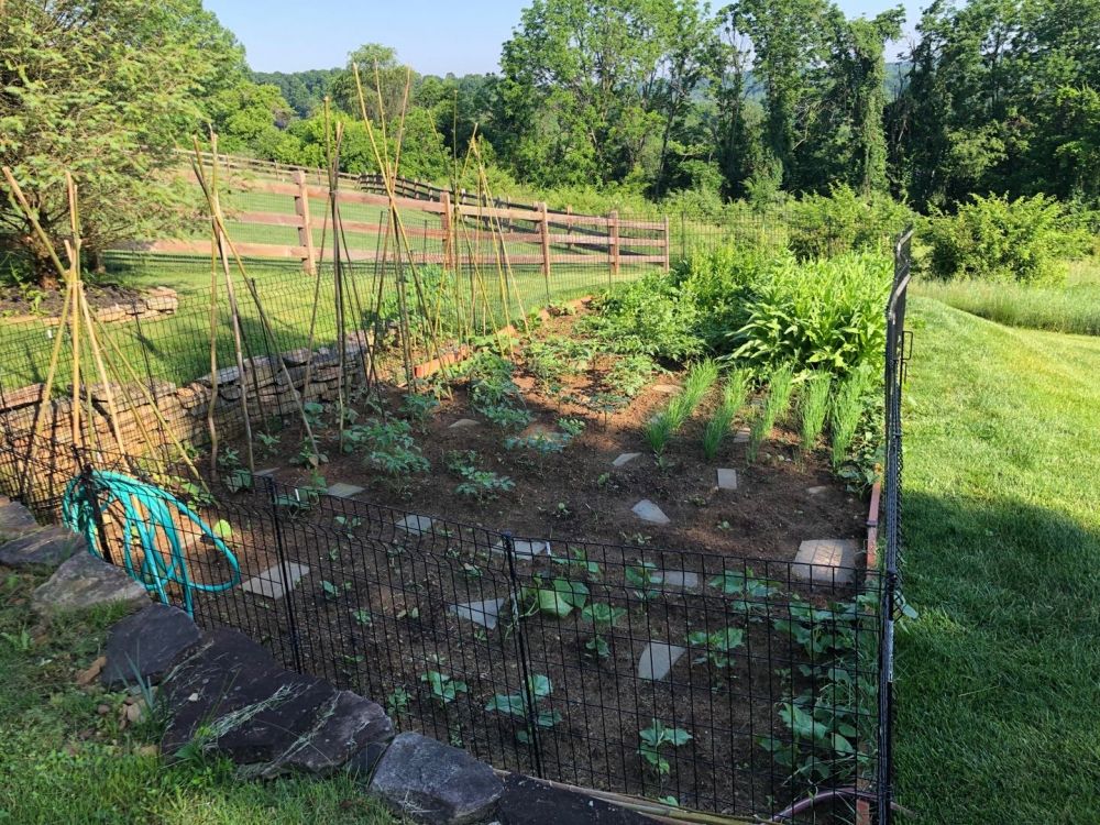 2021年3月,于后院西坡之上,去草皮,辟一菜园,围篱止鹿。自种果蔬,以农事为乐。不日,天暖,樱花大炽,满目春花照眼明。