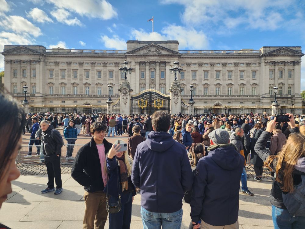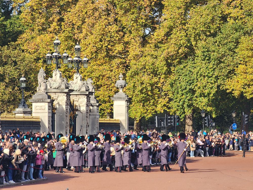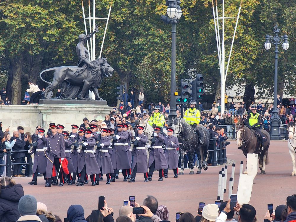 白金汉宫卫兵的换防仪式当数第一。才十点四十,就听到乐队在演奏了。赶快爬上公园两米高的短墙。刚刚坐好,换防的仪仗队就出来了。居高临下倒是看得非常清楚。不到十一点就结束了,看来女王家有不准时的权利。说老实话,名过其实。