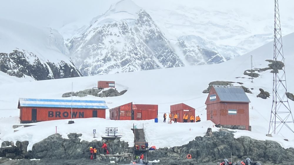 这里有一个科学考察站,布朗站。它的房子是低矮的红木房。它的历史可以追溯到 1951 年 ,当时阿根廷在天堂港建立了布朗海军上将海军分遣队。阿根廷南极研究所于 1964-65 年接管了该站,创建了南极半岛最完整的生物实验室之一。另有一栋科学研究专用大楼,配备三个实验室、摄影工作室、紧急广播电台、办公室和图书馆。 叫阿尔米兰特·布朗研究站,于 1965 年 2 月 17 日落成。1984年4月12日,一位医生被命令留下来过冬,他不愿意,烧毁了布朗站原有的设施。 后来重建了基地,但被降级仅限夏季使用。