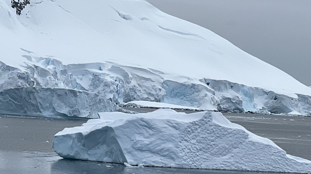 今天,12/11/2023,阴,阳光被云挡在雪峰以外。游轮两边,飘浮着淡绿色的冰川,造型十分优美。有的象冰上舞台,有的象水上舞者,有的象固体的浪波,有的象坚硬的城墙。冰川上有海燕旋舞,海面上有结群的企鹅畅流寻食。