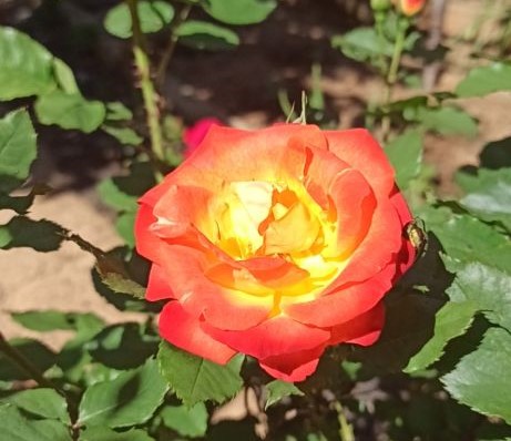 这些都是珍贵品种, 是娇贵的玫瑰, 难免有些娇气! 尽管我已经付出最大的努力照顾她们,剪枝, 去(黑斑)叶, 施肥, 浇水和杀虫,她们像娇贵的女孩, 有时还会不太满意。有的开一朵两朵花就完了, 敷衍了事;有的把绿叶撒满一地, 剩下光杆花枝, 搭了着脑袋, 没精打彩;更有干脆的, 照顾不周到, 就要那个给你看看。我喜欢把剪下来的花枝处理一下, 插在肥沃的地里, 精心浇水,想培育出更多的玫瑰。这些娇贵的女孩也不太愿意配合, 最后只活了两三棵。