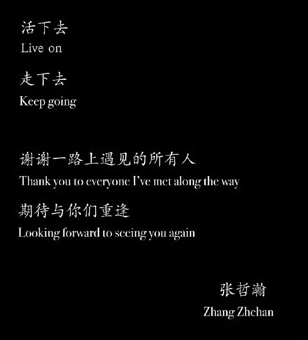 因为张哲瀚还在努力还在坚持,也许我们对这个世界的信念还没有完全坍塌,因为他的故事他带个我们的歌曲作品也是组成这个世界的一部分,美好的那部分