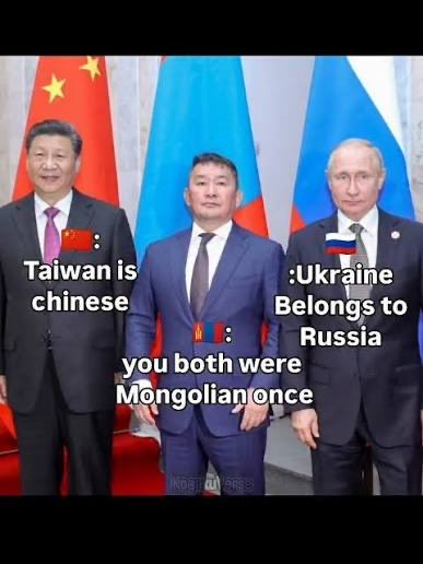 蒙古总统说,你们两个都别给我争了!俄螺丝及中共国,自古以来就是我大蒙不可分割的一部分。