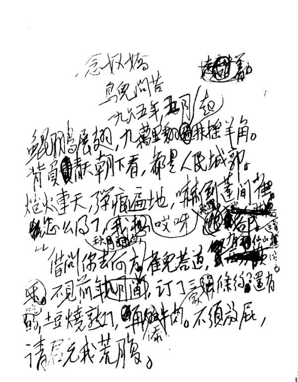 广播里不停地播放毛的这首刚发表的新词。作为小学生的我,完全不明就里,只能听懂不许放屁,试看天地翻覆。、土豆烧熟了,再加牛肉。这两句。
