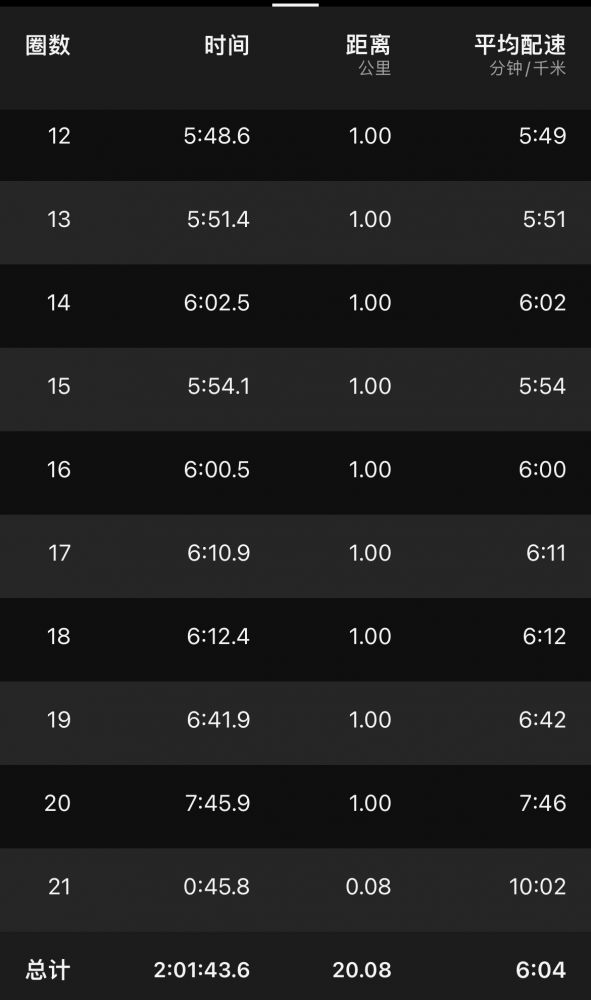结束前约10个10秒的strides(继续控制心率),全程约2小时。