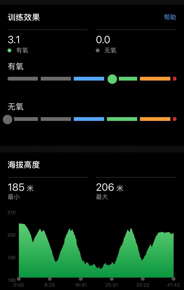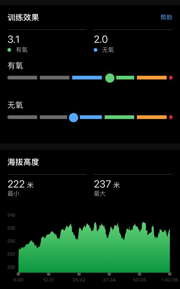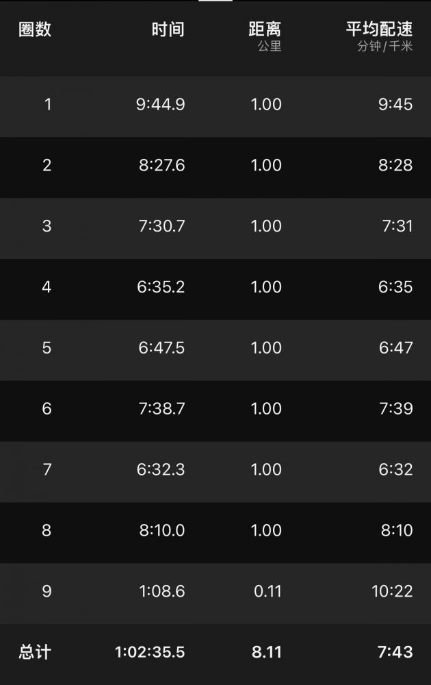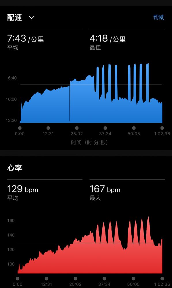 放松(降心率至130以下)之后八个repeats(分两段),最高心率167。