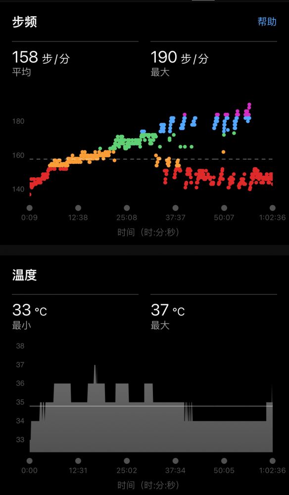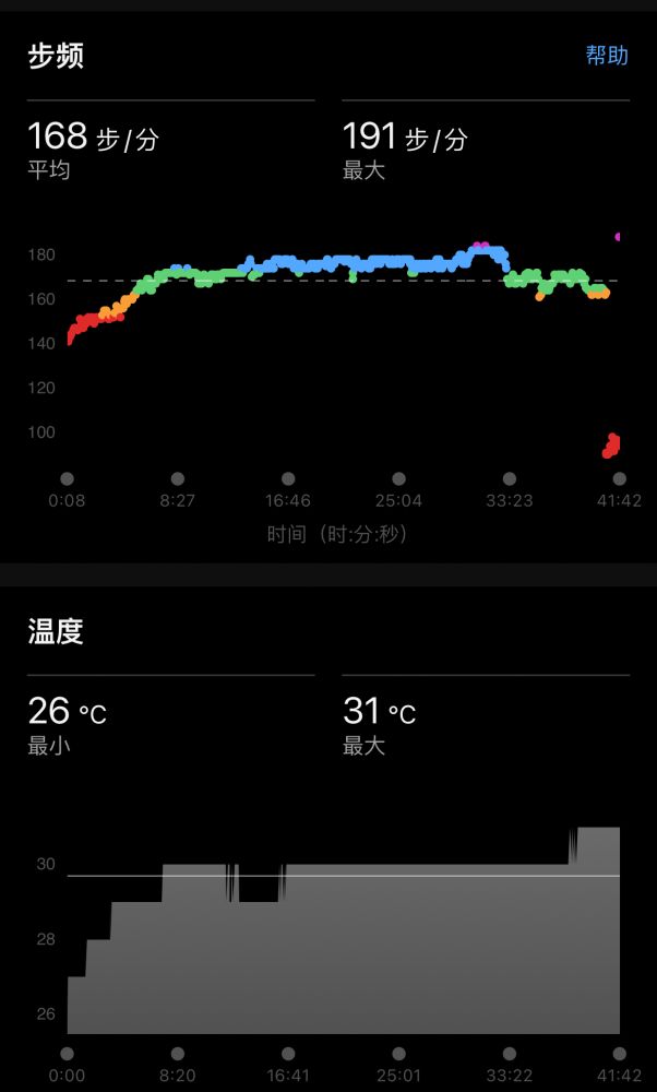 慢跑热身4k(约30min),较低cadence,心率逐步提升至约140。