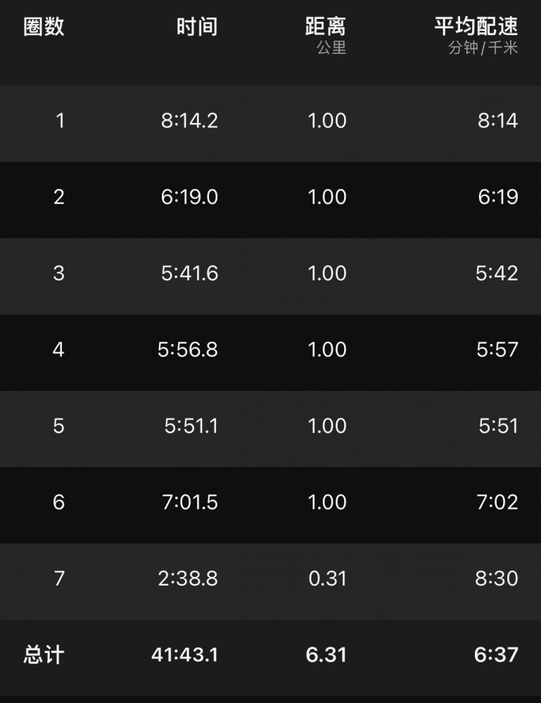 Cadence持续较低(以及心率),适当持续提速(约5k),几个上下坡(往返)。