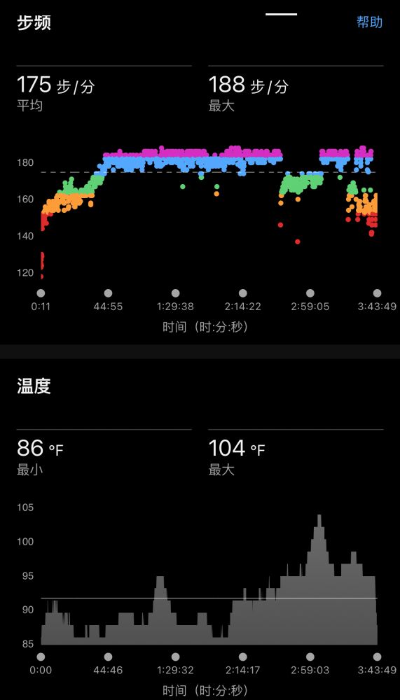 其它:trail、地势较平缓、步频控制好(4迈后基本在180+)、温度高(因开始时间晚,中后期经常在90+degrees)、中途补水二三次、吃胶一个。