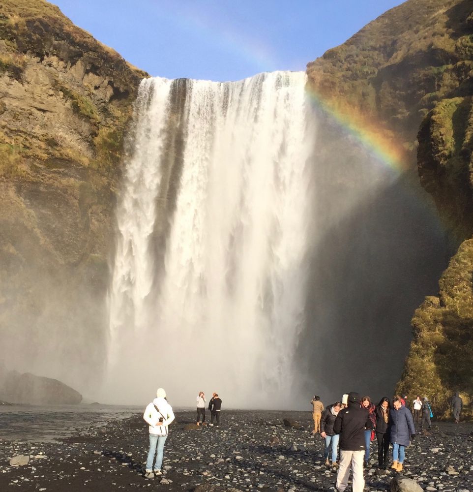 斯科加瀑布发源于Skoga 河,是冰岛最大最壮丽的瀑布之一。宽25米,落差达60米,瀑布从斯科加尔峭????奔流而下。接近瀑布的时候,在高速公路上就能遥看到大瀑布的壮丽景观,而且能听到瀑布的隆隆水流声。把车停在停车场后赶紧向瀑布走过去。