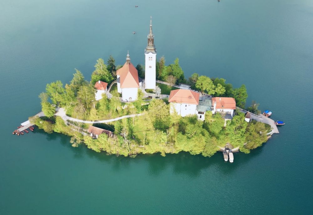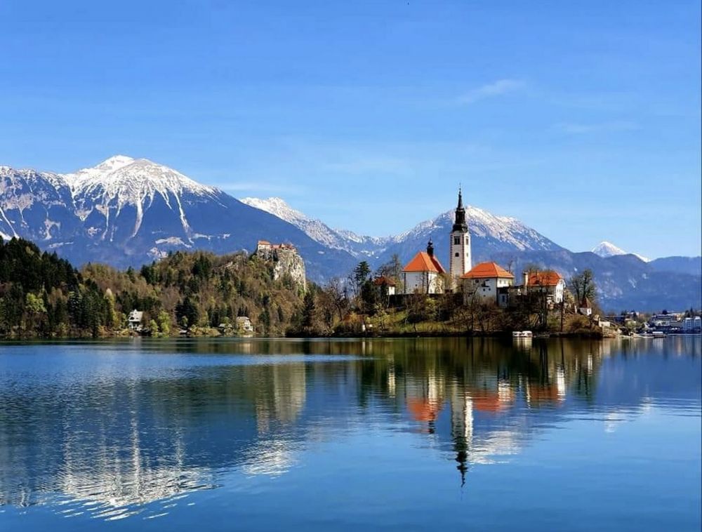 可以毫不夸张的说,布莱德湖是斯洛文尼亚的一张明片,从谷歌地图上搜索Slovenia ,弹出来的正是这这张明片,尖塔教堂在鲜红色的房子簇拥下,在背后雪山的衬托下,倒影在清澈的湖水中,犹如一棵璀璨明珠镶嵌湛蓝的布莱徳湖中。