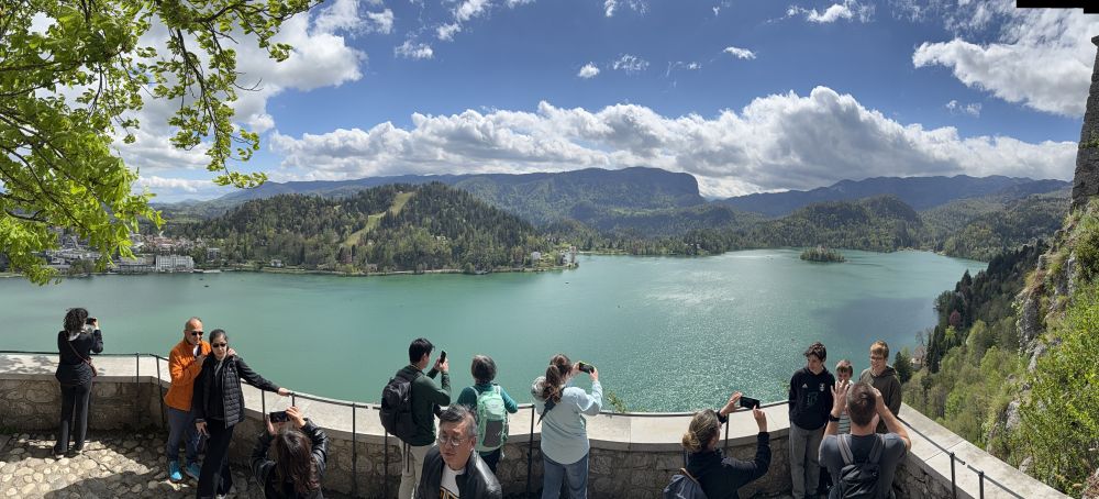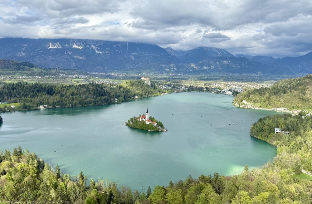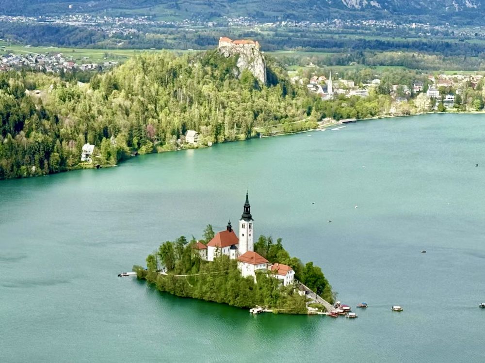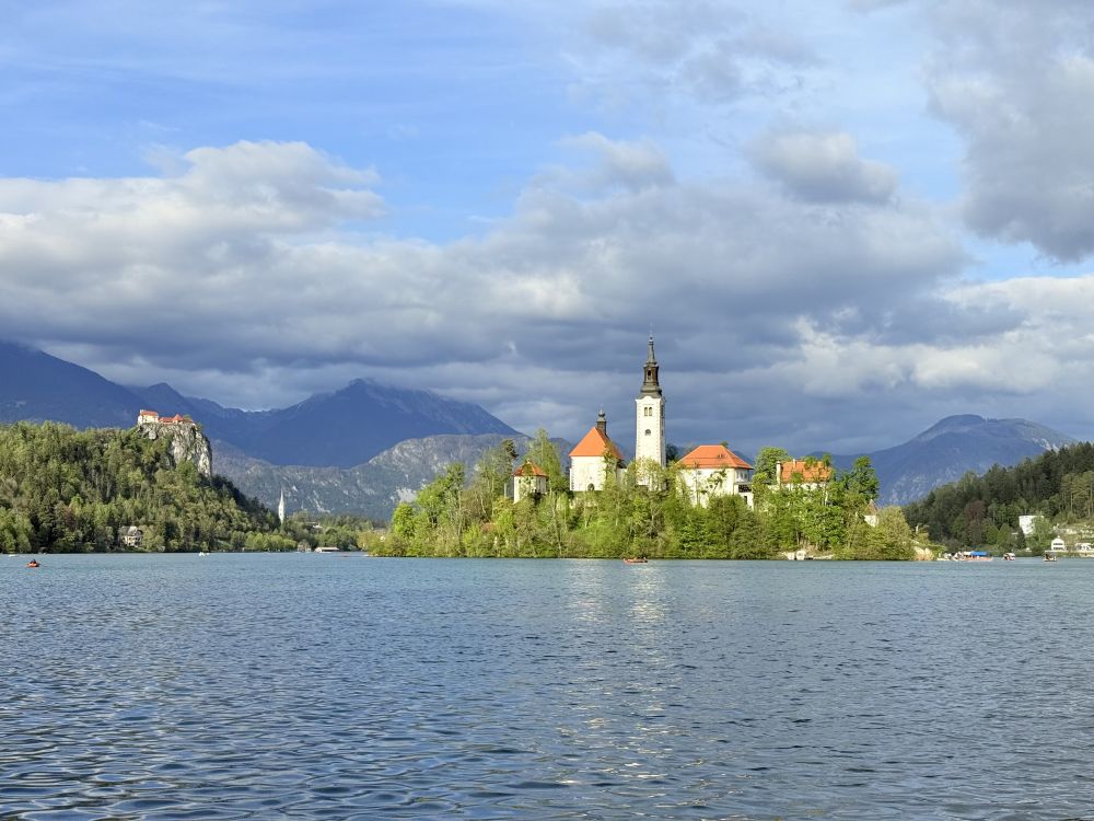 布莱德湖虽比不上哈尔斯特那么热门,但适逢复活节长周未,待我们坐船来到岛上,有点儿游人如织的感觉了,原想到教堂里敲一下许愿钟,但有太多人排队,门票还要加12.5 欧元,只好作罢。其实这座湖心岛很袖珍,唯一的地标建筑就是这座教堂,远观惊艳,近看平平。岛上唯一一家冰淇淋店也排长队,好像人们坐船来这里专门为了吃口冰淇淋似的。