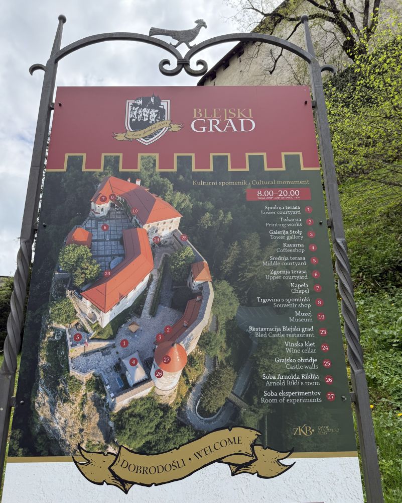 坐落在湖东侧悬崖上布莱徳城堡几乎开车就可以到达,从停车场到入口处大约只需走十分钟左右的坡道。悬崖上的城堡比湖心岛屿相对“繁华”:城堡内设有博物馆、酒窖、印刷厂、铁匠工作室、纪念品商店和餐厅。此外,从城堡的露台也可以到欣赏壮丽的湖景,只不过比从Mala Osojnica观景台上看到的景色略为逊色。