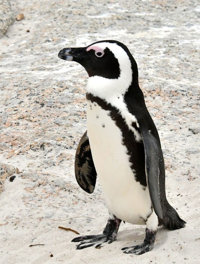 环企鹅属这一类的很难分清。把九年前拍的非洲企鹅和今年在乌苏怀亚企鹅岛拍到的麦哲伦企鹅放在一起比较,才能看出,非洲企鹅的从黑色的头部脸庞到前胸是一道很宽的白带,而南非企鹅是两道较细的白带,这算是一个比较明显的区别。